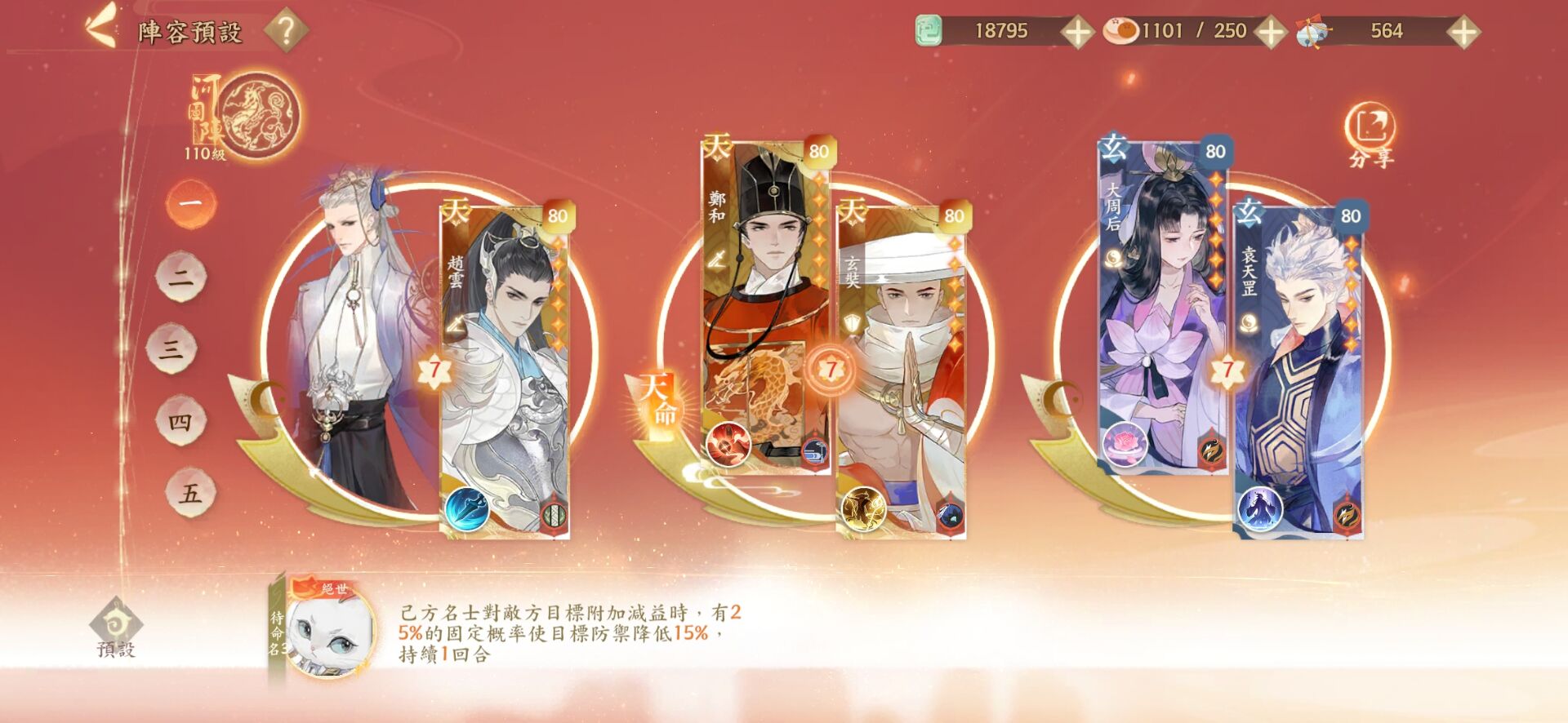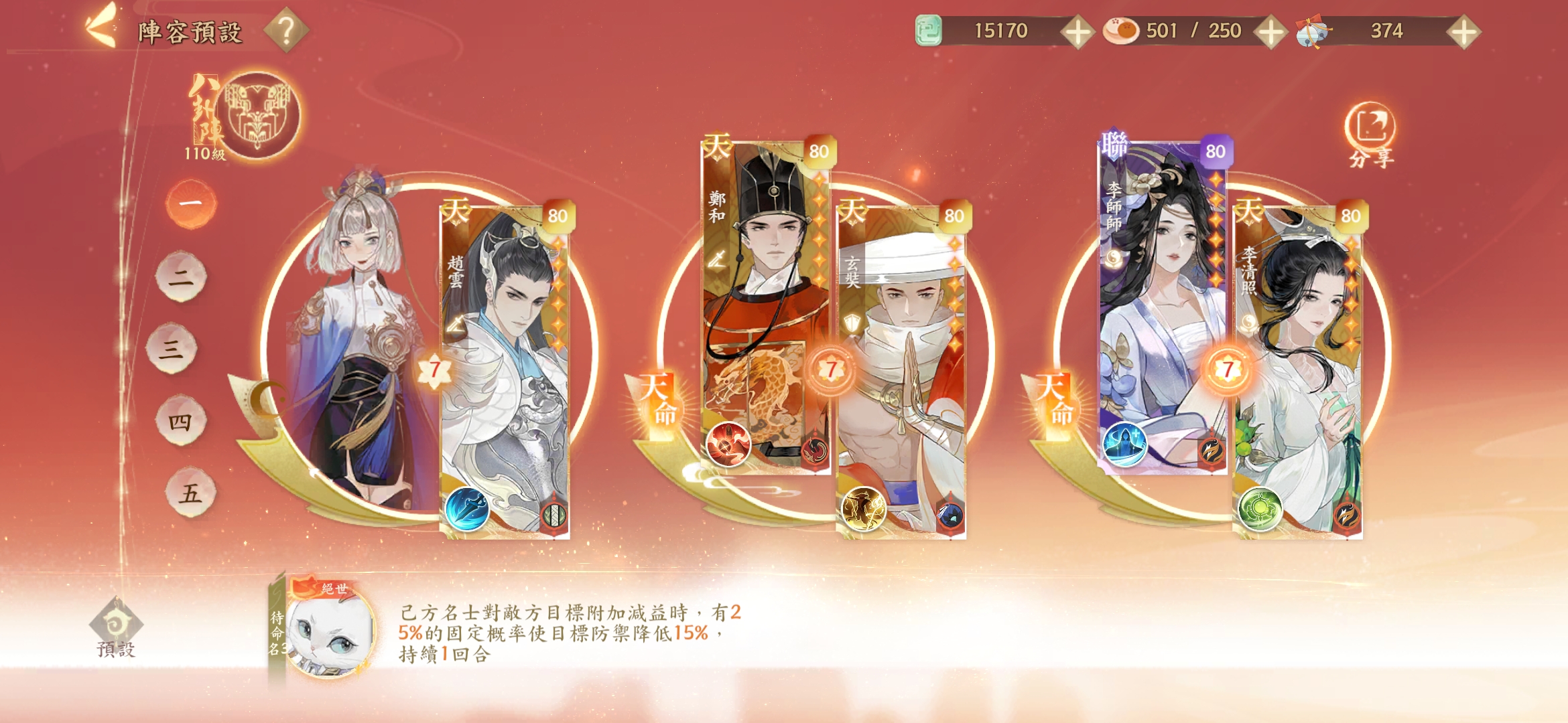 玄奘+鄭和(主C)、趙雲(副C)、李清照、李師師(功能卡)