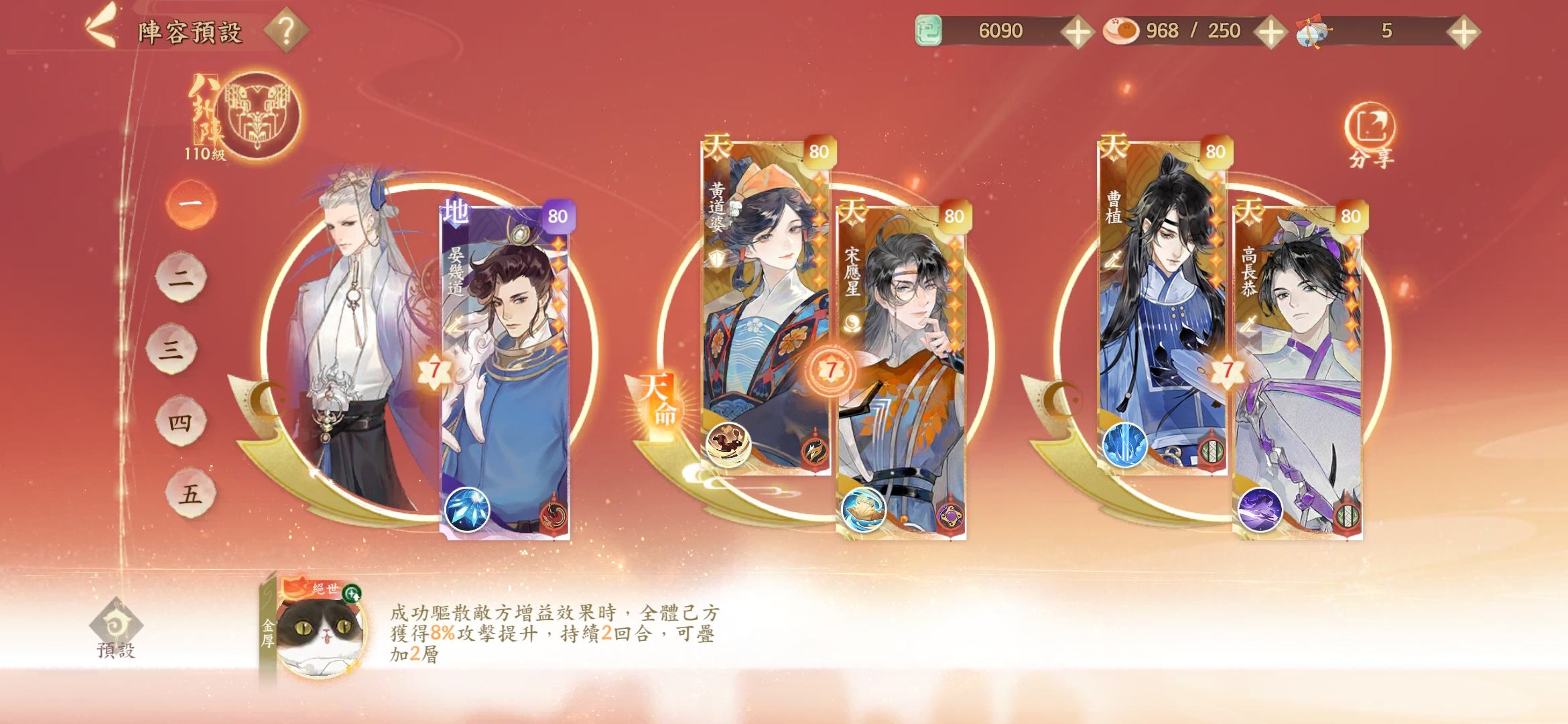 名士貓技能選擇:【提升生命】-【增加效果抵抗】-【喵開物】