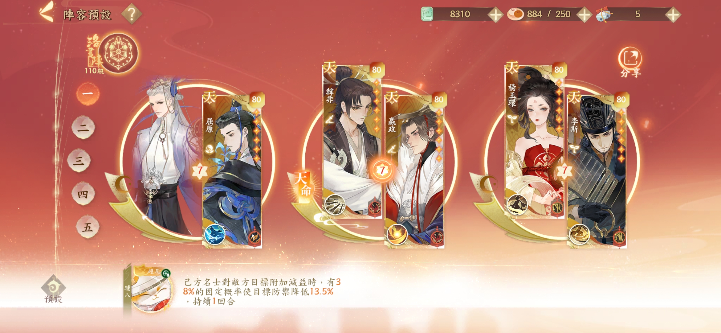 名士貓技能選擇:【提升防禦】-【增加效果抵抗】-【毅兮】